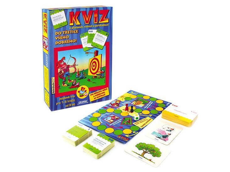 Tento jedinečný kvíz o příslovích, rčeních a pořekadlech se dokonale uplatní v rodině i ve škole. Zábavnou formou rozšiřuje slovní zásobu a zvyšuje jazykovou kulturu dětí i dospělých. Na 90 kartách s otázkami a 45 kartách s originálními ilustracemi je zpracováno celkem 190 nejznámějších českých přísloví, rčení a pořekadel, jež tvoří nedílnou součást našeho kulturního dědictví. Hra přinášející poučení i zábavu je určena pro 1 až 6 hráčů starších 9 let. Obsah balení: 90 karet s otázkami 45 karet s ilustracemi 6 figurek kostka hrací plocha návod