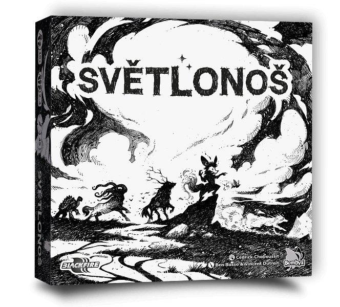 Černobílé dobrodružství s partou fantaskních stvoření. Přes noc temnota zhoustla. Už není možné rozlišit zeleň stromů ani siluety sopek. Všude je naprosté ticho. Pro rozptýlení temnoty a obnovení barev bude potřeba spousty záblesků světla. Dobrodruzi se narodili a byli vycvičeni za jediným účelem - ovládnout sílu elementů, vybrat si společníky a najít cestu do osvětlených míst. Do legend se však zapíše pouze jeden z nich. V rámci osmi dnů, které tvoří hru, postupně najmete osm společníků a utvoříte s nimi společenství. Jejich efekty jsou spojené s elementy a přinesou vám záblesky světla. Aktivují se v závislosti na výsledcích, které vám padnou na vašich kostkách. Poté ujdete kus své cesty s cílem najít osvětlené vesnice. Ten, kdo posbírá nejvíce záblesků světla, rozptýlí temnotu a zapíše své jméno do pradávného písma. Hrací plán je oboustranný a umožní vám prožít 2 naprosto odlišné výpravy. Jednu pěší a jednu na lodích. Obsah balení: •1 hrací plán •1 menší deska •30 kostek •53 karet •96 kartonových žetonů •41 dřevěných žetonů •1 česká pravidla Specifika: •Doba hraní: cca 45 minut •Věk: 10+ •Pro 2-4 hráče