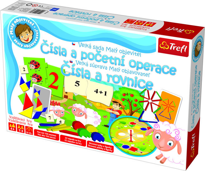 Edukativní hra z edice Malý objevitel. Čísla a početní operace je sada vzdělávacích her, které dětem přátelským způsobem představují svět čísel, množin a tvarů. Účastník hry si procvičují základní matematické dovednosti. Při hraní si děti rozvíjejí porozumění číslům pomocí obrázků a přiřazování čísel k množinám prvků. Dále si přisvojují rozpoznávání jednotlivých geometrických tvarů. Sada obsahuje hry a hádanky, které pomáhají probouzet a rozvíjet zájem o matematiku, což je dobrým základem pro počátky školního vzdělávání. Vhodné pro dšti od 4 let.