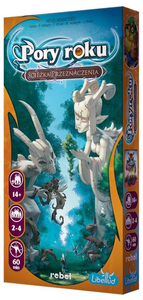 Ścieżka Przeznaczenia to drugie rozszerzenie do gry Pory Roku. Zawiera 21 nowych kart Mocy (po dwie kopie każdej karty), które można łączyć ze wszystkimi innymi kartami oraz 10 nowych kart Czarów. Możecie również powiększyć swój arsenał o 6 żetonów zdolności specjalnych oraz pozwolić kości przeznaczenia pokierować waszym losem!