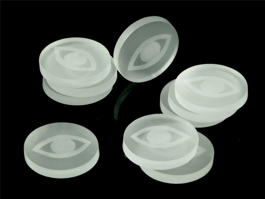 Zestaw 10 żetonów o średnicy 22 mm, wykonanych ze szkła akrylowego o grubości 3 mm.