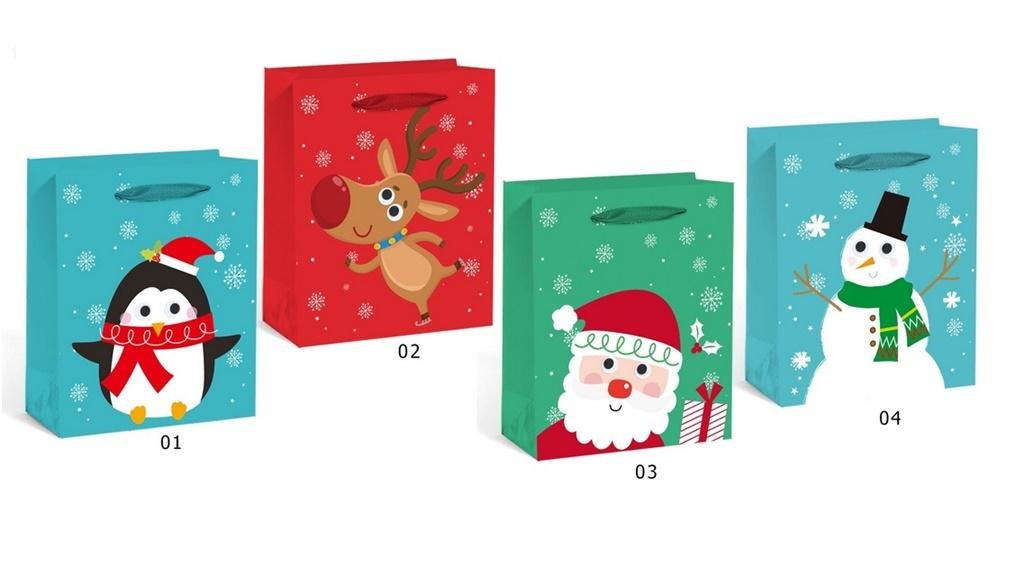 Torebka świąteczna KR 2726 L o wymiarach 32*42*11.5 cm - 3D brokat. Mix wzorów, towar wysyłany losowo.