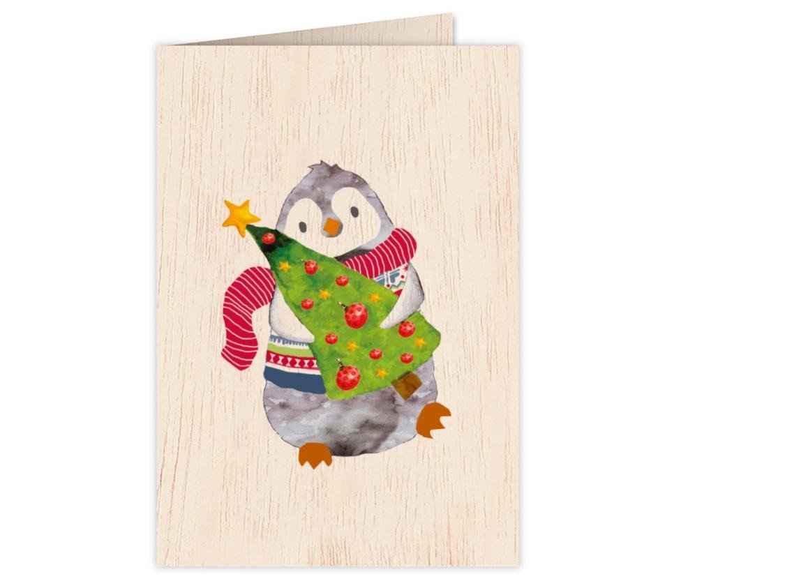 Karnet drewniany C6 + koperta Święta Pingwin