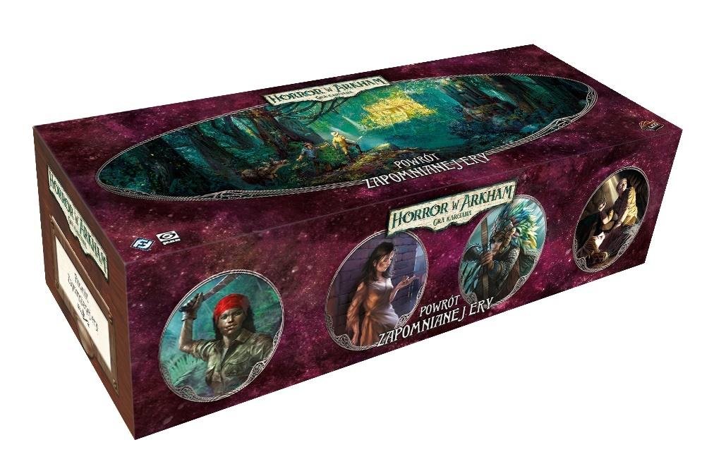 Powrót Zapomnianej ery to rozszerzenie do Horroru w Arkham: Gry karcianej, zawierające nowe zestawy spotkań do każdego scenariusza kampanii Zapomniana era, stawiające waszych badaczy w obliczu nowych zagrożeń i wyzwań. Nowe karty graczy, stanowiące ulepszone wersje tych dostępnych w ramach cyklu Zapomniana era, oferują nowe narzędzia i możliwości podczas ulepszania swoich talii badaczy. Dodatkowo, pudełko z tego rozszerzenia może służyć do przechowywania kart z całej kampanii, dzięki załączonym separatorom.