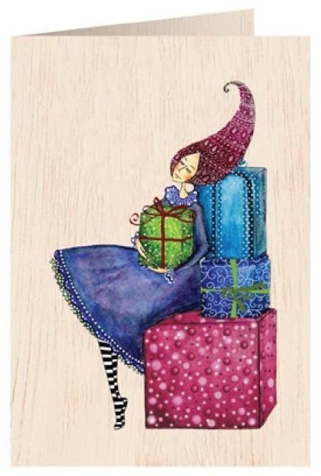 Karnet drewniany C6 + koperta Święta Prezenty