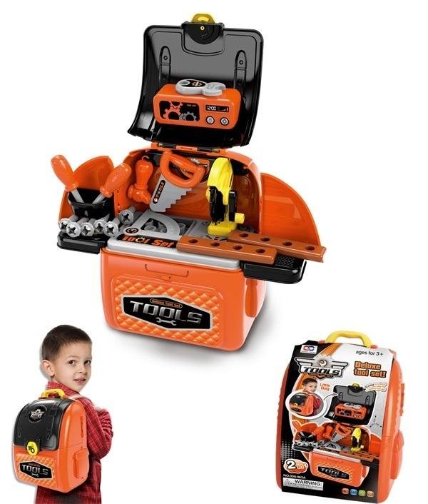 Plecak z przenośnym warsztatem to nieodłączna zabawka dla małego majsterkowicza. Plecak z zawartością jest lekki i niewielkich rozmiarów, co sprawia, że dziecko zabierze swój warsztat na każdą wycieczkę. W ten sposób może zabrać ją na plac zabaw, czy też do kolegi. W zestawie dziecko znajdzie niezbędne elementy do majsterkowania.