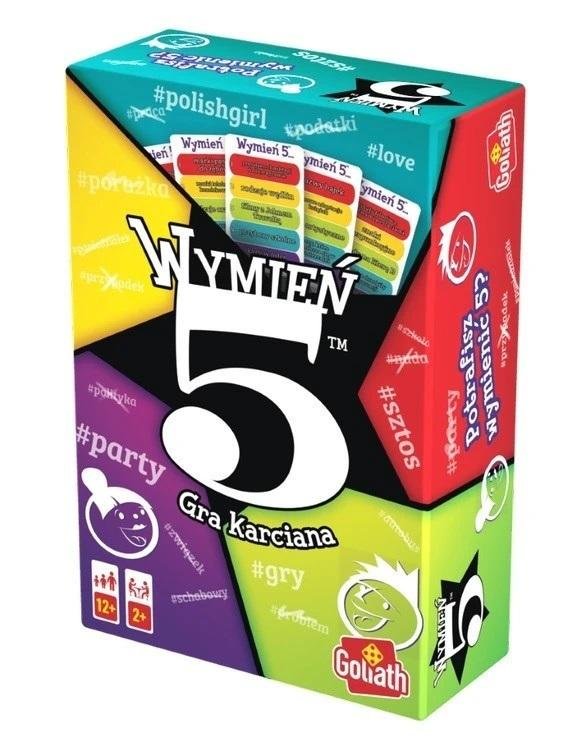 Wymień 5 to pomysłowa gra imprezowa, w której trzeba szybko znaleźć odpowiedzi na banalne pytania. Każdy potrafi podać nazwisko słynnego hollywoodzkiego amanta, ale dwa przykłady jest już trudniej znaleźć. A tym bardziej pięć!