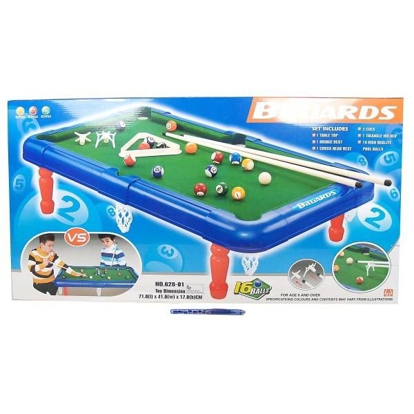 ?Počet hráčů: 2 ?Doporučený věk: od 5 let ?Doba hraní: dle chuti a výdrže ?Typ hry: párty hry: rodinné Stolní kulečník o rozměrech 71×41×17cm. Neboj se a ponoř se do kulečníkového světa, i jako začátečník se zapoj do světa kulečníku.