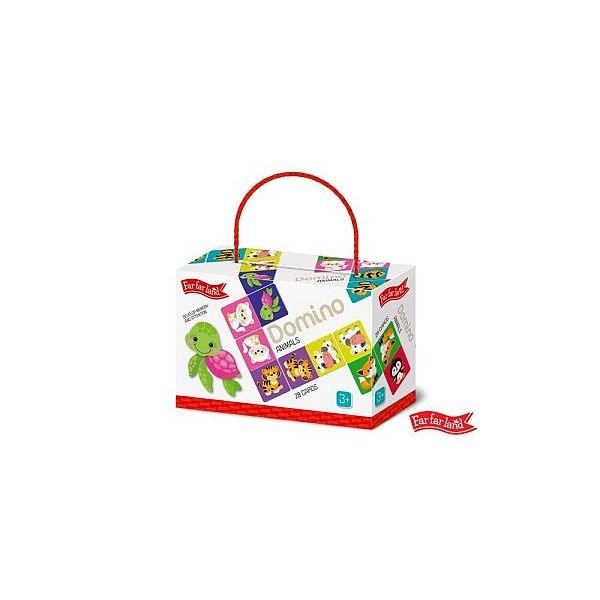 Far Far Land Domino s obrázky zvířátka 28 karet. Věk: 3+ číst celé