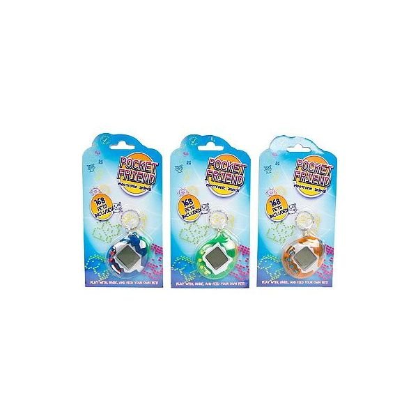 Elektronická hra zvířátko 6cm na baterie se zvukem 3barvy na kartě. Barva: modrá, zelená, oranžová Cena za 1 ks. Druh dle skladové dostupnosti. Věk: 3+