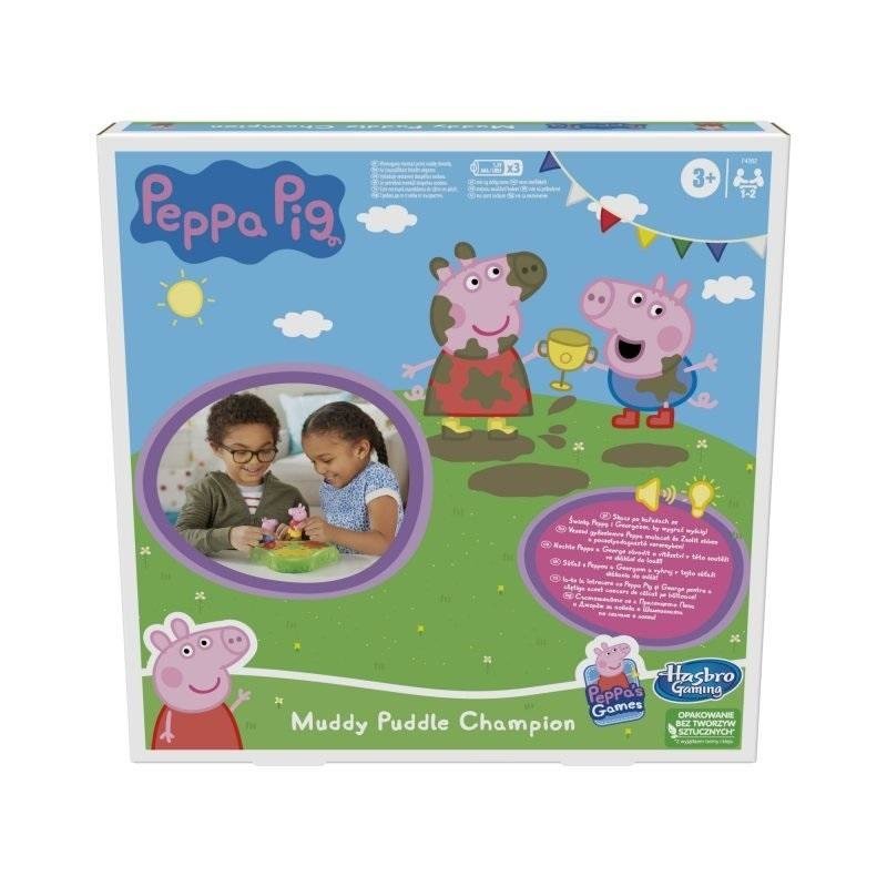 Skacz po kałużach ze Świnką Peppą i George\'em w grze Muddy Puddle Champion, by wygrać wyścig! Dopasuj buciki swojej postaci do koloru świateł i wtedy wskocz do kałuży, zdobądź punkty i wygraj! Idealna gra dla dzieci od 3 roku życia. Inspirowana bajką "Świnka Peppa", z pewnością ucieszy...