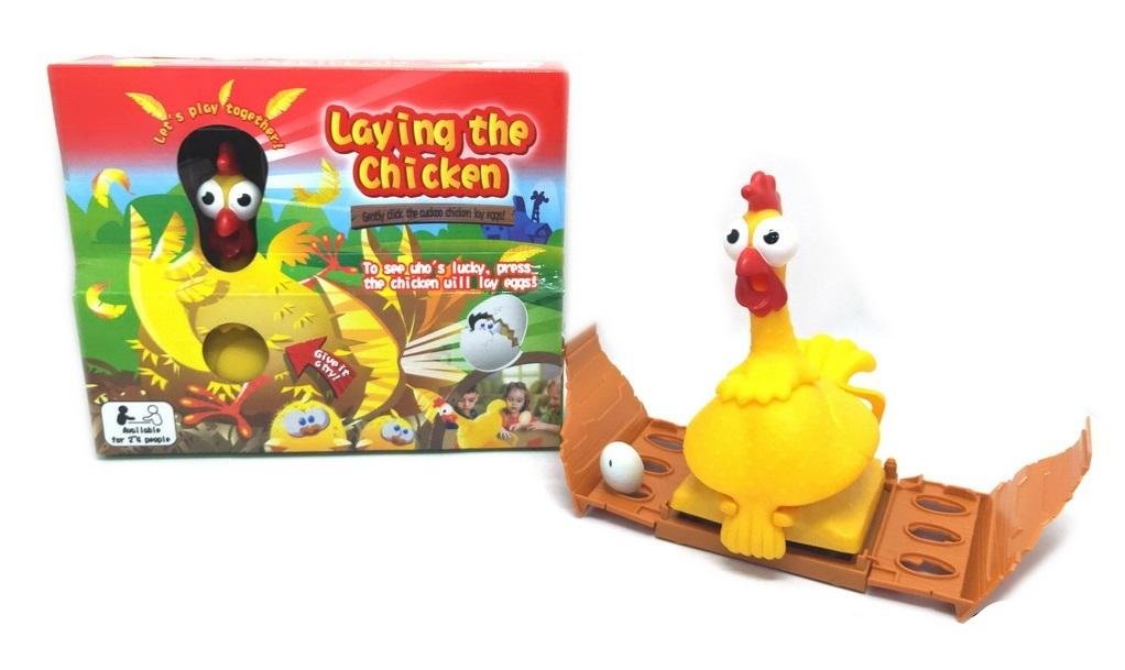 " Kura znosząca jajko to zabawna gra zręcznościowa dla całej rodziny. Po rzuceniu kostką gracz naciska grzbiet gdaczącej kury. Gracz zdobywa punkt, gdy kura podczas jego kolejki zniesie jajo z kurczakiem.