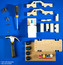 Każdy zestaw zawiera wstępnie wycięte kawałki drewna, plastikowe części oraz inne elementy potrzebne do złożenia modelu.