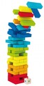 Gra zręcznościowa zawiera 54 el w 6 kolorach. Uczy logicznego myślenia, kolorów, kolejności, liczenia. Wykonana jest z wysokiej jakości drewna. Nie ma ostrych kształtów. Do produkcji zabawki użyto nietoksycznych farb. Rzuć kostką. Wyjmij element takiego koloru, jaki wyrzuciłeś Połóż klocek na górze i buduj wieżę. Nie pozwól wieży rozpaść się. ZASADY GRY Gracze (1-8) siadają wokół ułożonej wieży. Można wybrać różne warianty gry: 1.Każdy z graczy po kolei wyciąga jeden dowolny element. 2. Każdy gracz wyciąga tyle elementów, ile oczek wyrzuci wcześniej na kostce. 3. Każdy gracz wyciąga jeden element takiego koloru, jaki wyrzucił kostką. Gra kończy się, kiedy któryś z graczy zburzy wieżę. Wygrywają wszyscy gracze, którzy tego nie zrobili.