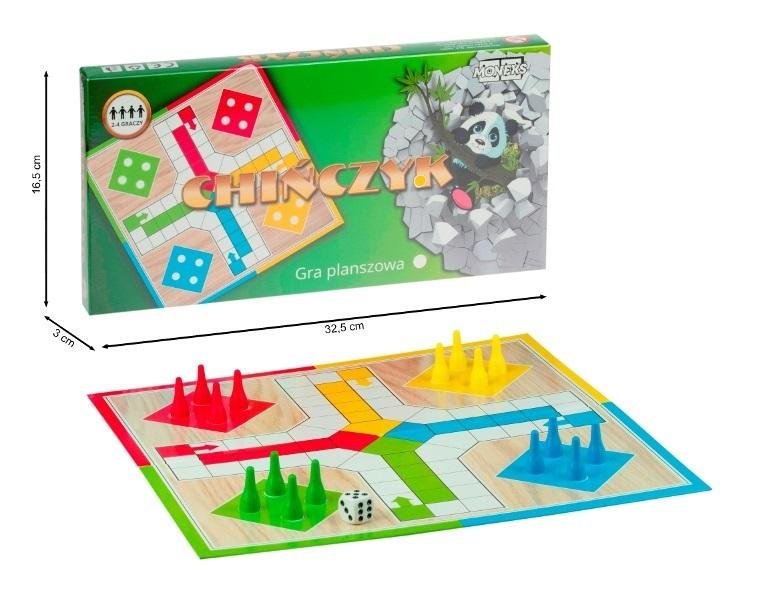 Chińczyk to wyśmienita zabawa w gronie znajomych czy rodziny, która może rozruszać spotkanie towarzyskie lub skrócić czas oczekiwania na ulubiony film. Proste zasady, 4 pionki w jednym kolorze dla każdego z 4 graczy, kostka i ruszamy! Kto pierwszy przejdzie całą planszę i umieści swoje pionki na mecie wygrywa! Gra przeznaczona dla 2-4 graczy, w wieku od 3 lat.