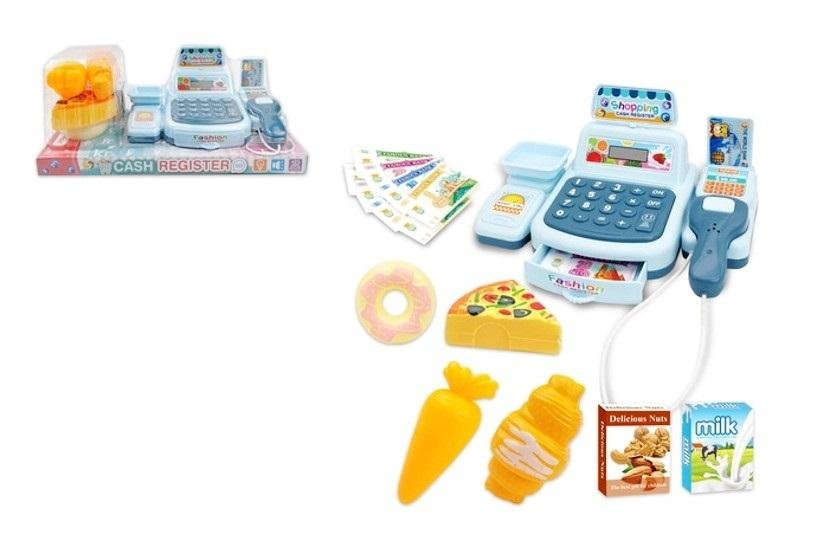 Kasa sklepowa ze skanerem i z akcesoriami. Szuflada otwiera się ręcznie. Skaner świeci kolorowym światełkiem i wydaje dźwięki. Zabawka działa na baterie typu AA. Baterie nie są załączone do zabawki. Zabawka dla dzieci od 3 lat. Zabawka zapakowana w kartonowe opakowanie z okienkiem.