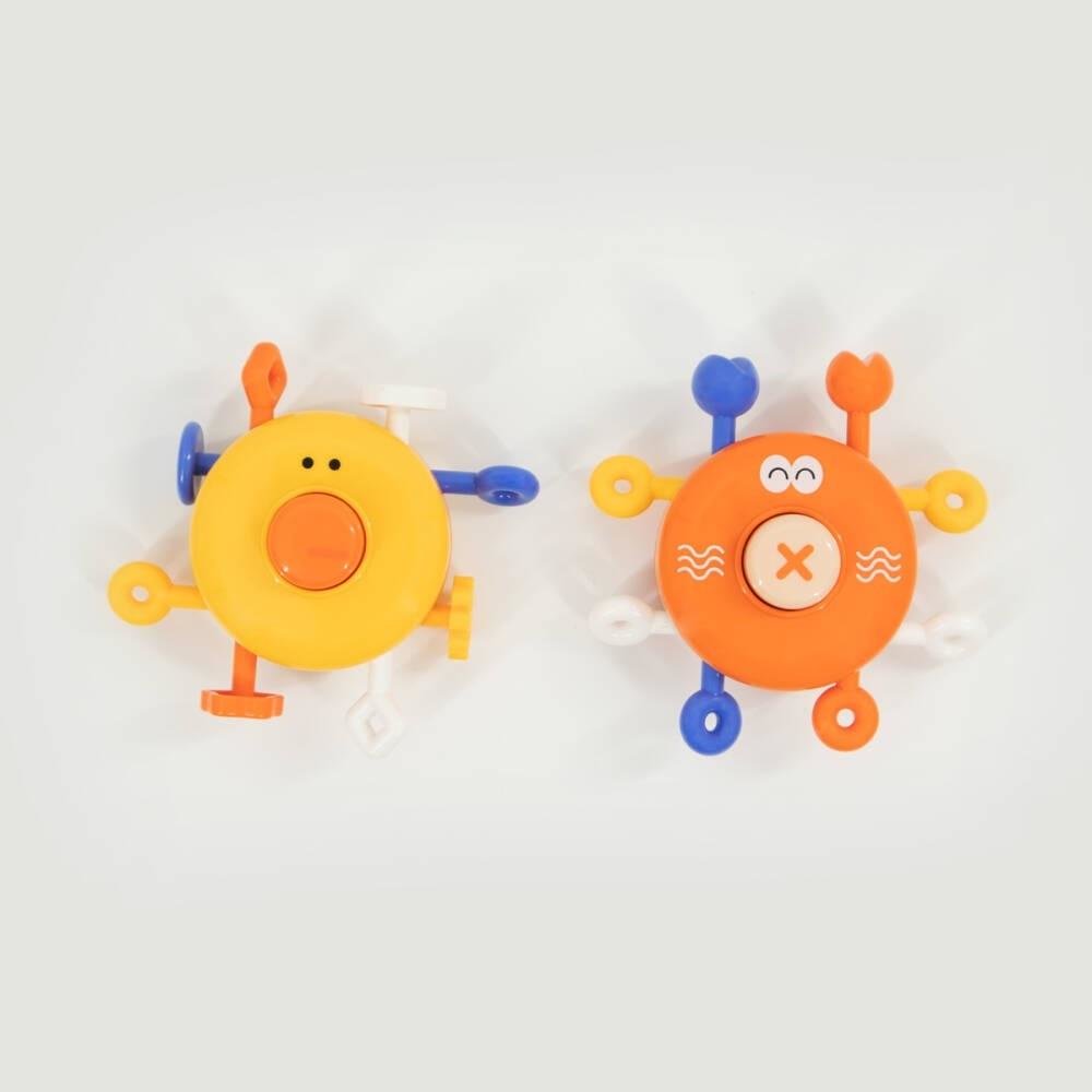Dostępna jest w dwóch kolorach (żółtym i pomarańczowym). Zabawkę można wstrząsać, obracać, naciskać. Pomaga w ćwiczeniu chwytu. Przeznaczona dla dzieci od narodzin.