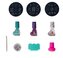 Zestaw dla dzieci z lakierem do paznokci, pieczątkami i małymi diamentami.