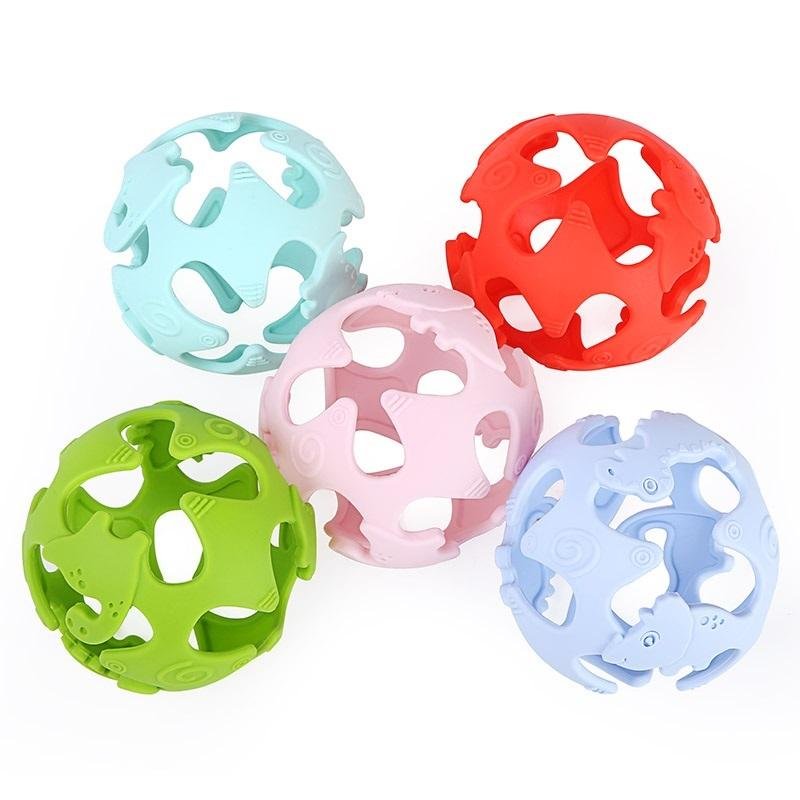Mięciutka piłeczka, ozdobiona dinozaurami, zachwyci każdego malucha! Wykonana z bezpiecznego silikonu jest odporna na zgniatanie, a znajdujące się w niej otwory ułatwią małym rączkom chwytanie zabawki. Wypustki o różnych kształtach przyniosą ulgę obolałym dziąsłom ząbkującego dziecka. Piłeczka dostępna jest w kilku kolorach.