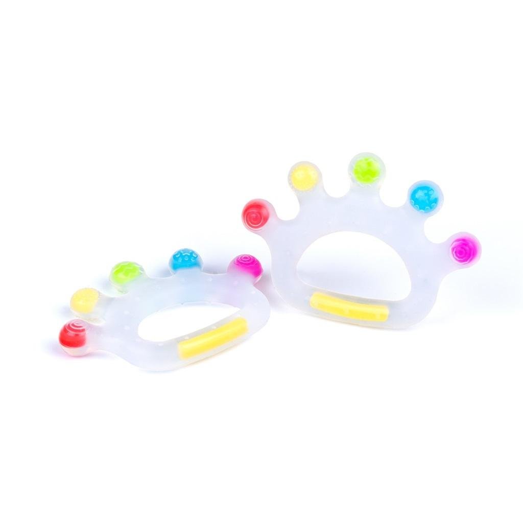 Kolorowy gryzaczek wykonany z bezpiecznego silikonu. Zdobią go wypustki o zróżnicowanym kształcie, dzięki czemu delikatnie masuje on opuchnięte dziąsełka, przynosząc maluchowi ulgę. Wygodny uchwyt jest idealnie dostosowany do małej rączki, co ułatwia chwytanie zabawki.