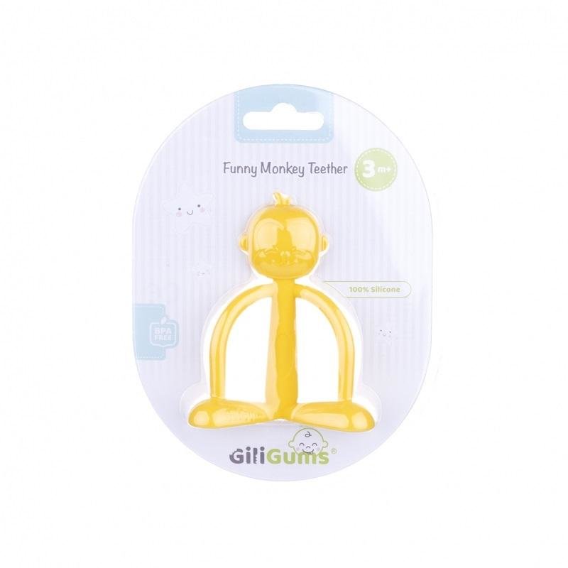 Żółciutki, silikonowy gryzaczek w kształcie małpki zabawi bobasa i rozmasuje obolałe dziąsełka! Wszystko za sprawą praktycznych wypustek, które zdobią zwierzątko. Wygodne otwory ułatwią małym rączkom chwytanie gryzaka.