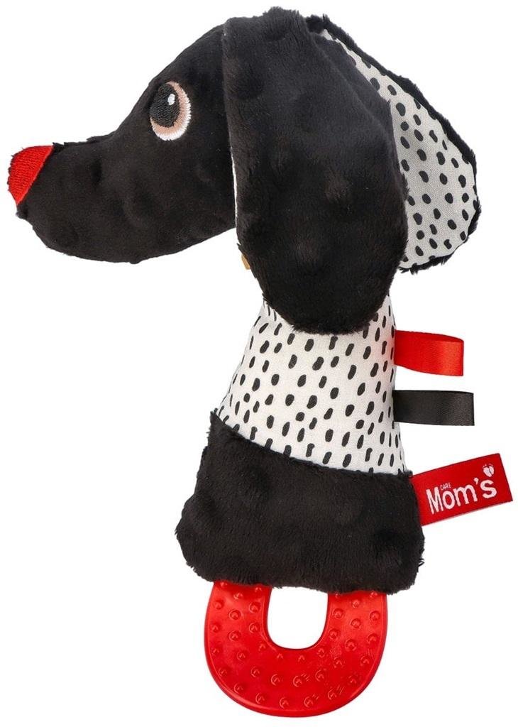 Miěkký látkový kousátko Jamiś od značky Mom's care byl pečlivě navržen tak, aby splňoval potřeby nejmenších dětí. Využívá certifikované látky s různými strukturami, které pomáhají rozvíjet smysl dotyku a zároveň stimulují sluch díky integrovanému pískátku. Kontrastní černobílý potisk na hřbetu a uších je perfektní pro podporu vývoje zraku, protože malé děti nejlépe vnímají takovéto barvy a vzory.