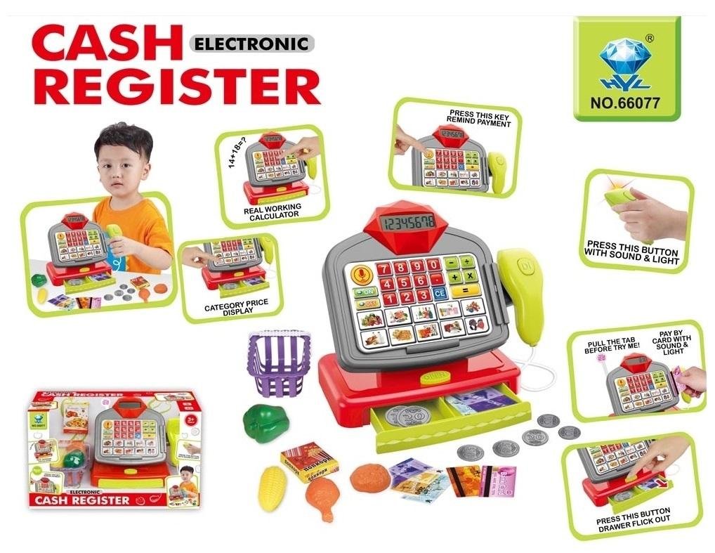 Zabawkowa kasa sklepowa wraz z akcesoriami. Kasa wydaje dżwięki oraz świeci. číst celé