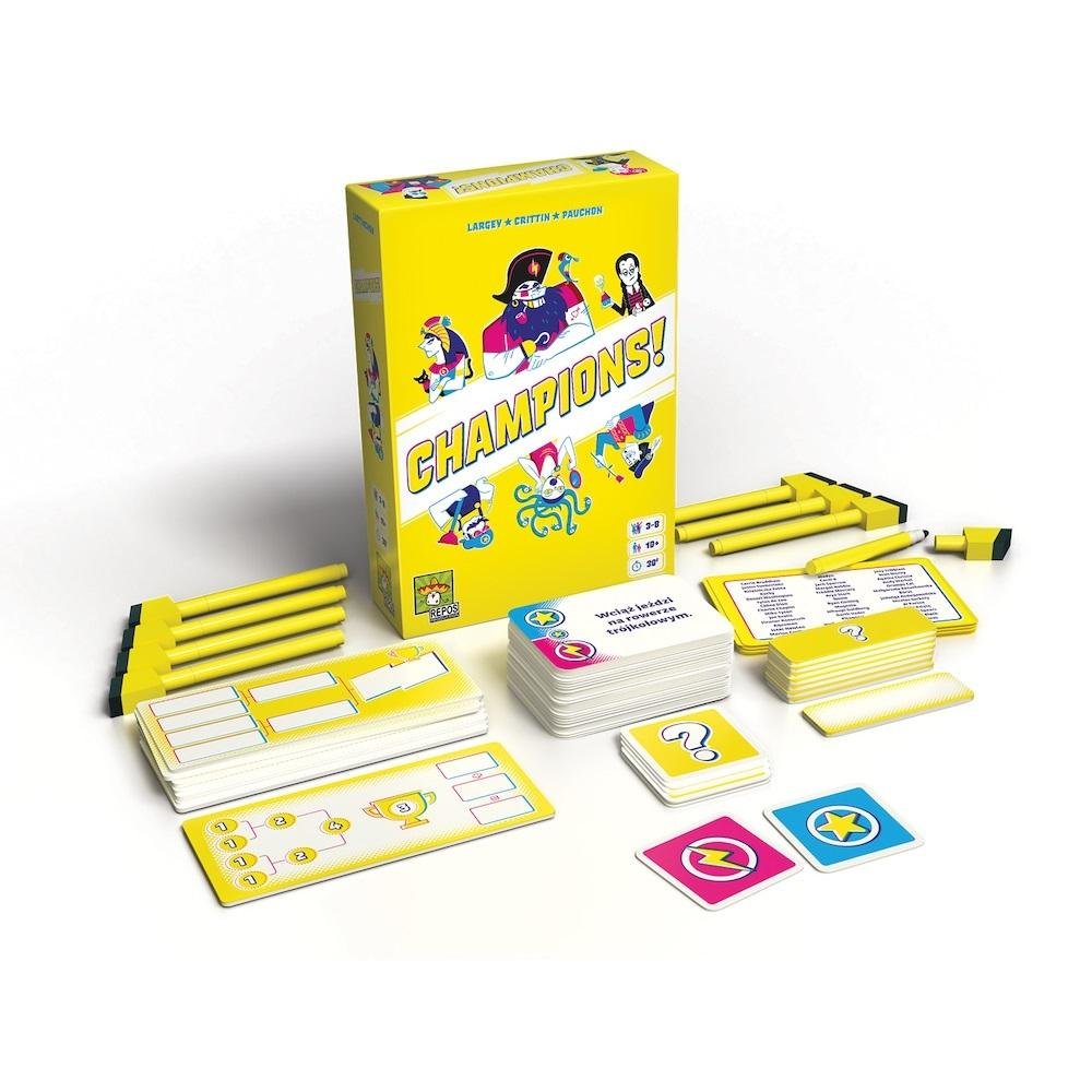 - Champions! to idealna gra imprezowa: ma minimum zasad, można ją w pełni dopasować do wiedzy i możliwości graczy i jest pełna zwariowanego humoru.