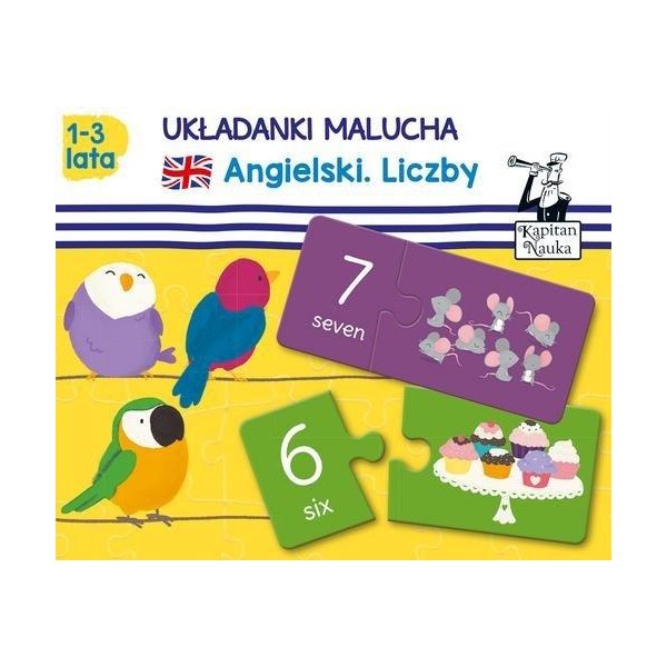 Układanki malucha Angielski. Liczby to dwuelementowe puzzle rozwijające umiejętność liczenia po angielsku. Podczas wciągającej zabawy dzieci poznają cyfry, oswoją się z angielskimi nazwami liczb, a także poćwiczą wyszukiwanie i przeliczanie obiektów w zakresie 10.