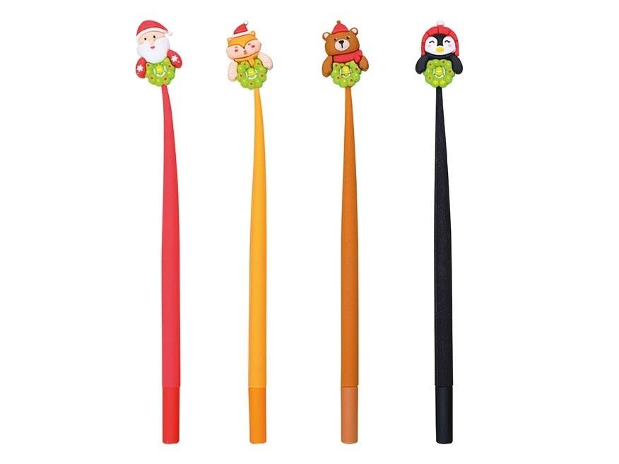 Długopis z kolorową wyginaną końcówką, powłoka antypoślizgowa, niebieski wkład, mix wzorów. Wymiar: 25mm x 250mm x 10mm (szer. x wys. x gł.)