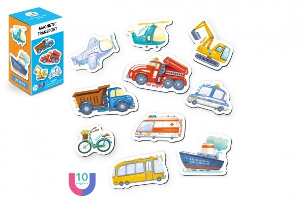 - Obsahuje 10 magnetických dílků zaměřených na téma dopravy.
