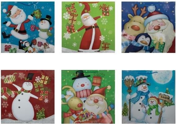 Torebka ozdobna laminowana PL-11 ŚWIĘTA BOŻEGO NARODZENIA, mix wzorów, wzór wysyłany losowo. Wymiary torebki: 450 x 450 x 210 mm.
