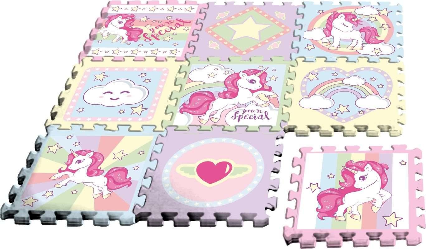 EUROSWAN Podlahové pěnové puzzle Jednorožec Eva, 9 dílků v tašce cm