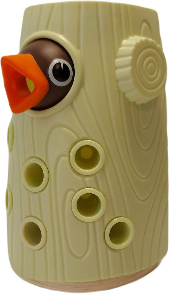 Gra wykonana jest z materiałów wysokiej jakości plastiku i drewna z magnetycznymi elementami, ma ładne żywe kolory, gładkie krawędzi. Zadaniem dziecka jest wyciąganie robaczków z kłody przy pomocy ptaszka i precyzyjne umieszczanie go w dziobie pisklaka. Gra pomaga w nauce kolorów, liczenia, uczy przyrody i życia ptaków oraz ćwiczy precyzję ruchów.
