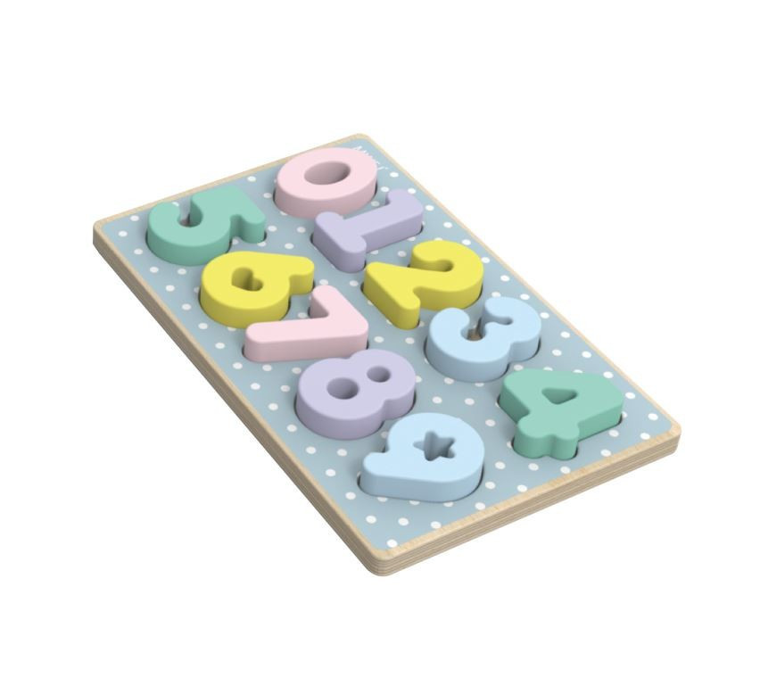 Prześliczna drewniana układanka dla miłośników cyferek i liczeniaCzy Twoje dziecko zna już wszystkie cyferki? Ta przepiękna drewniana układanka z cyferkami będzie idealna dla maluchów, które fascynuje liczenie i nie tylko. Urocze i przyjaźnie wyglądające elementy układanki szybko zaskarbią sobie ich sympatię. Małe rączki z łatwością rozwiążą tę uroczą układankę. Dopasowywanie cyferek do właściwych miejsc na planszy rozwija koordynację ręka-oko, uczy rozpoznawania kształtów, a także wspomaga naukę liczenia i rozpoznawania cyfr. Łagodne, pastelowe kolory zachęcą do zabawy i pobudzą wyobraźnię, dzięki przepięknym odcieniom fioletowego, niebieskiego i żółtego koloru. Farby wodne, którym pokryto układankę są całkowicie nietoksyczne i dzięki temu jeszcze bardziej bezpieczne dla Twojej pociechy. Sukcesy podczas dopasowywania kształtów oraz w nauce liczenia sprawią, że każde dziecko będzie zachwycone podczas zabawy. Połączenie prostoty zabawki z przepięknym designem zainteresują malucha w taki sposób, że będzie chciało do niej często wracać. Jakość w każdym caluDrewniana układanka z cyferkami została wykonana z solidnego drewna, którego trwałość sprawi, że zabawka będzie służyć przez lata. Starannie opracowane, zaokrąglone kształty nie tylko ułatwiają łapanie elementów, ale zostały specjalnie stworzone tak, aby zabawa nimi była całkowicie bezpieczna. Kolory, którymi pokryto drewnianą układankę z cyferkami zostały uzyskane dzięki niezwykle trwałej farbie, która podobnie jak drewno, z którego stworzono ten produkt, nie straci głębi, dzięki czemu zabawka będzie przekazywana z pokolenia na pokolenie. Zalety produktu