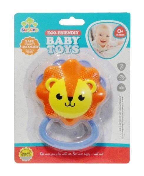 Grzechotka w kształcie sympatycznego lwa. Po potrząśnięciu zabawka wydaje dźwięki. Oddziałuje ona na zmysł wzroku, dotyku i słuchu. Produkt zapakowany w kartonową podstawkę z przezroczystym kloszem. Zabawka dla dzieci od pierwszych dni życia. Podane wymiary są wymiarami opakowania.