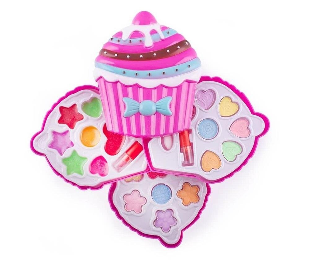 Duży zestaw do makijażu dla dziewczynki to marzenie dla każdej małej stylistki. Ten zestaw pozwoli każdej małej dziewczynce przenieść się w świat magii stylizacji. Kolorowa paletka w kształcie torcika, babeczki, a w środku mnóstwo kolorowych błyszczyków i cieni do malowania. To mała kosmetyczka, którą dziecko może bawić się do woli tworząc piękne i modne makijaże. Zestaw zawiera kolorowe cienie i błyszczyki, którymi dziewczynka będzie mogła malować swoje lale.