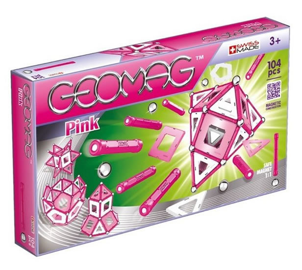 Nasaď si růžové brýle a ponoř se do světa dívčí fantazie. Balení obsahuje celkem 104 dílků - 36 dlouhých růžových magnetických tyček, 28 ocelových kuliček potažených bílým bronzem, 20 trojúhelníkových , 12 čtvercových, 6 pětiúhelníkových výplní v kombinaci bílé a růžové barvy + 1 čtvercový a 1 pětiúhelníkový podstavec v růžové barvě.