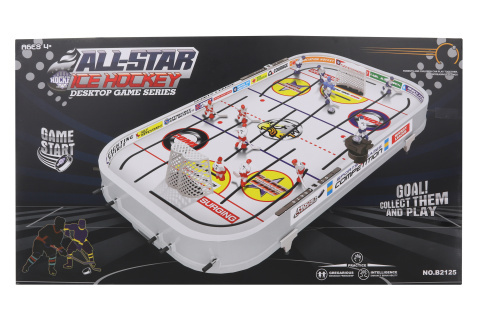 Plastová stolní hra hokej. Balení obsahuje hrací plochu, 12 hráčů, 2 branky, počítadla gólů. Rozměřy balení cca 98,5 x 54 x 12 cm. Věk 3+ číst celé