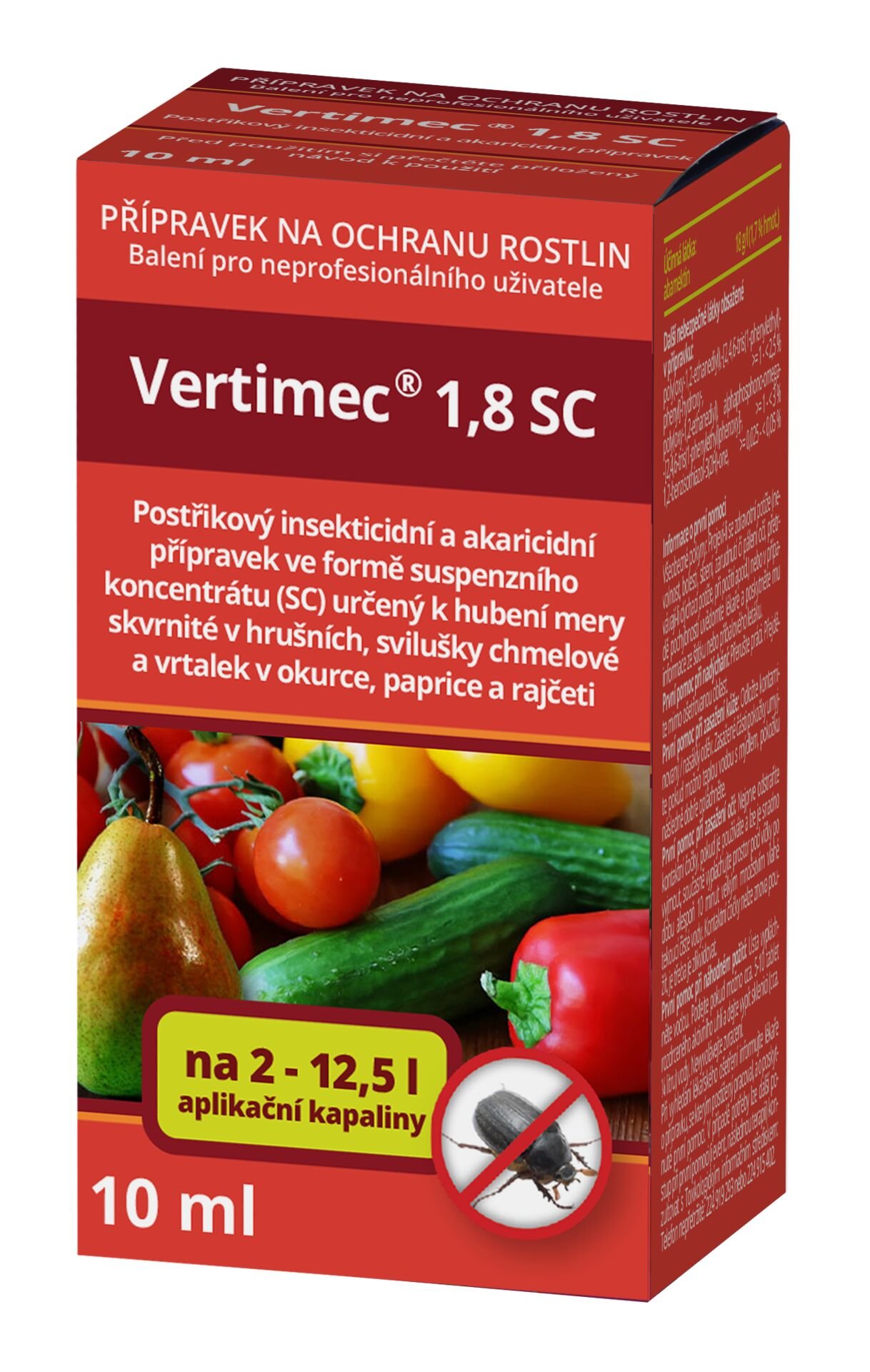 Tento postřikový koncentrát obsahuje účinnou látku Abamectin v koncentraci 18 g/l, která cíleně ničí škůdce známé svou odolností a škodlivostí. Vertimec 1,8 SC je určen k aplikaci na okrasné rostliny, okurky, papriku a rajčata a nabízí snadné dávkování přizpůsobené konkrétním druhům rostlin i druhům škůdců.