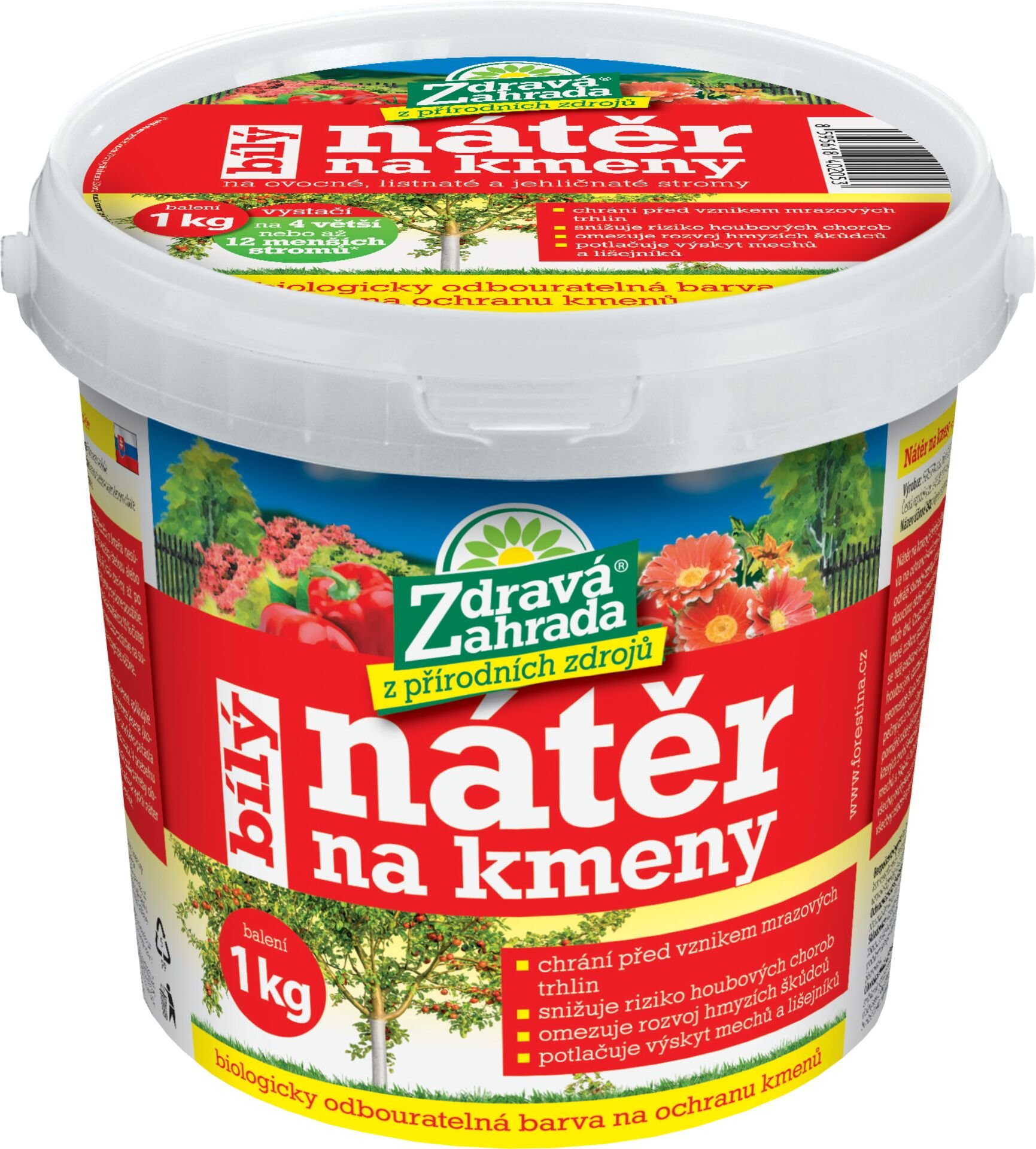Zdravá zahrada - Nátěr na kmeny stromů bílý je biologicky odbouratelná barva, která bezpečně chrání kmeny stromů a keřů. Bílá barva odráží sluneční paprsky a pomáhá tak stabilizovat teplotu kmenů během zimních měsíců, čímž snižuje riziko praskání a poškození mrazem. Navíc nátěr omezuje rozvoj houbových chorob, výskyt škůdců, mechů i lišejníků, což přispívá k dlouhodobému zdraví vašich rostlin.