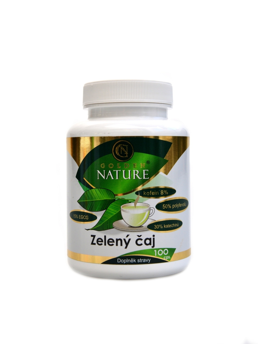 GOLDEN NATURE ZELENÝ ČAJ S DEKLAROVANÝM OBSAHEM POLYFENOLŮ 50%, KATECHINŮ 30%, EGCG 15% A KOFEINU 8% TO VŠE VE VYSOKÉM OBSAHU V KAPSLI 500mg.