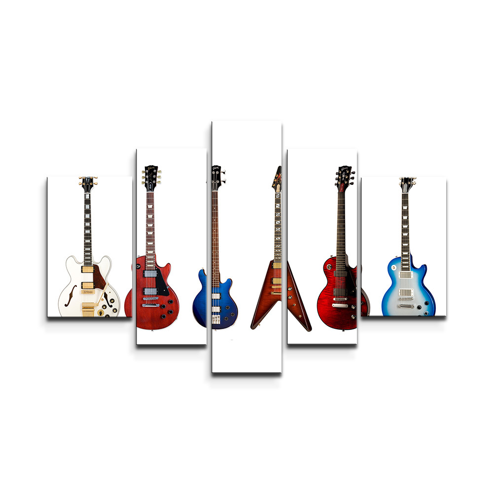 Obraz - 5-dílný Kytary 2: 125x90 cm