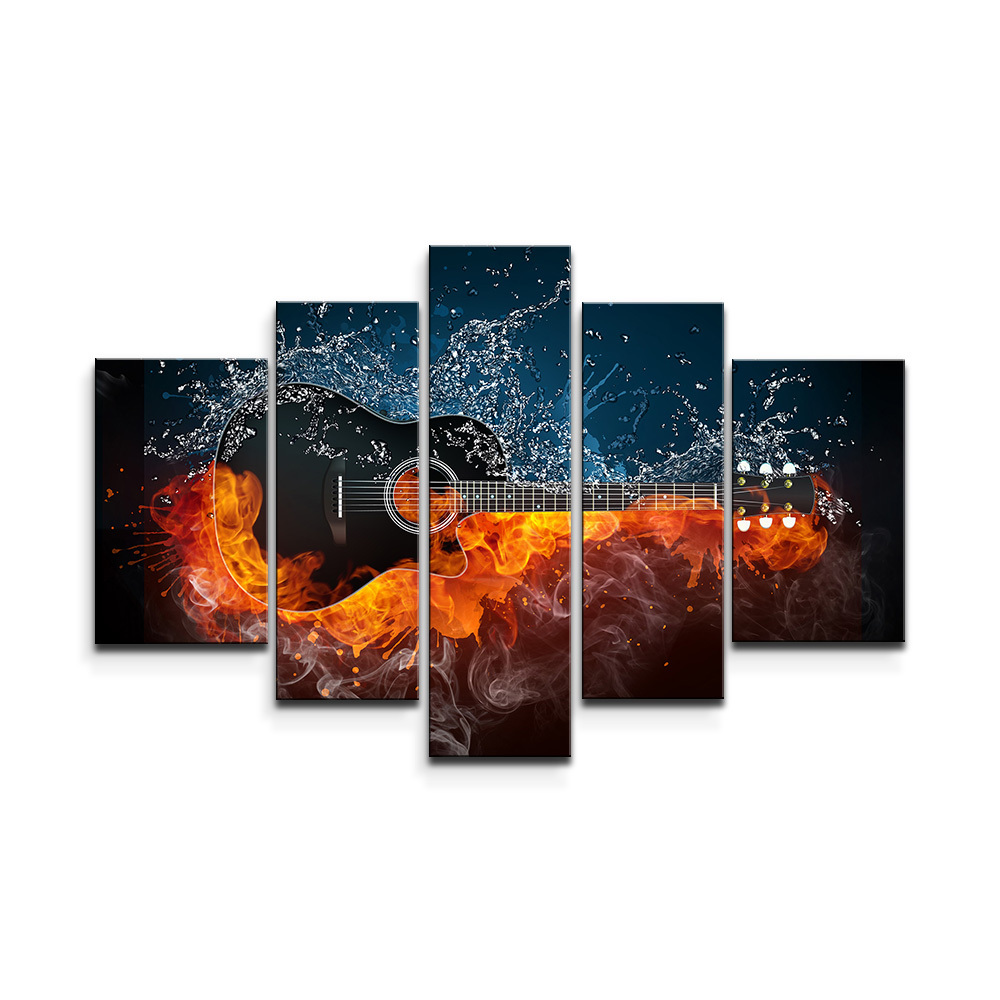 Obraz - 5-dílný Ohnivá kytara: 125x90 cm