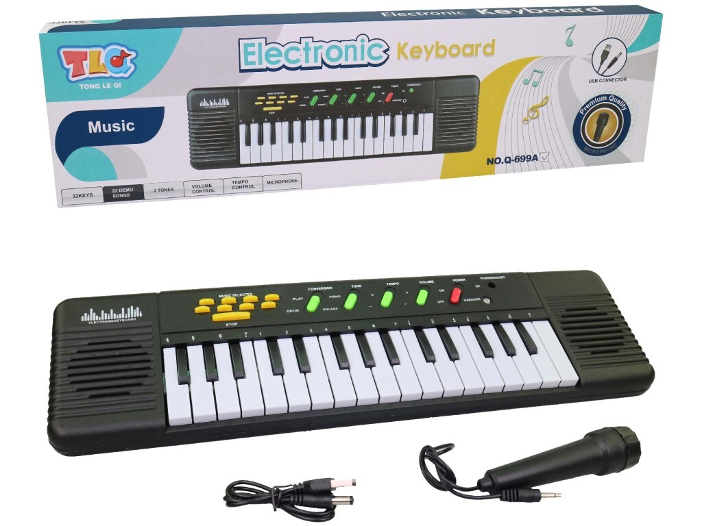Piáno elektronické, 32 kláves, mikrofon, USB konektorHračka je určena pro děti 3+.Rozměr hračky je 47,5 x 13,5 x 2 cm.Materiál hračky je plast.Balení hračky je box.Produkt je určený pro kohokoliv.Ke zprovoznění produktu jsou potřeba 4 AA baterie.Baterie nejsou součástí balení.