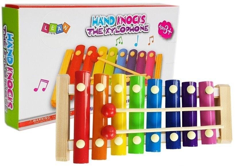 Cymbałki Drewniane Kolorowe 8 Tonów Pałeczki Jeśli Twój maluch uwielbia muzykę to proponujemy cymbałki, które na pewno rozpoczną przygodę muzyczną oraz rozwiną umiejętności muzyczne, jak poczucie rytmu. Żywa kolorystyka i różne wielkości pobudzają zmysł wzroku, dając mu radość z efektów swojej nowej zabawy. Cymbałki posiadają 8 tonów w które dziecko uderza pałeczkami, dzięki czemu z instrumentu wydobywa się przyjemny dźwięk, pobudzając zmysł słuchu. Cymbałki na solidnym spodzie wykonanym z naturalnego drewna. W zestawie dwie pałeczki z czerwoną kuleczką na końcu. Dziecko będzie mogło stawiać pierwsze kroki w świecie muzycznym. Wymiary zabawki: - cymbałki - 24,5 cm x 13 cm x 3 cm - pałeczka - 16,5 cm długość Wymiary opakowania: 25 cm x 13,5 cm x 4 cm Cymbałki zapakowane w estetyczne kolorowe opakowanie. Przeznaczone dla dzieci powyżej 3 roku życia.