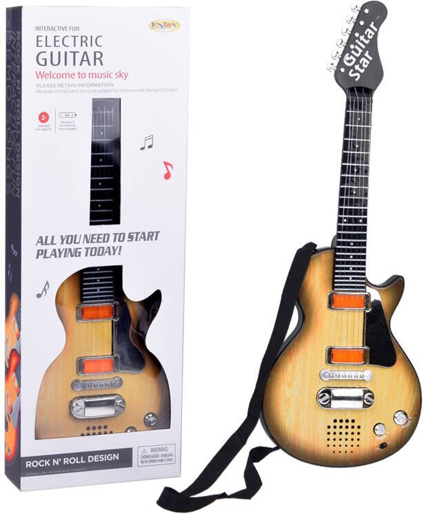 Zvukové efekty jsou doprovázeny blikajícími oranžovými světly pod strunami kytary, což vytváří skvělou vizuální show! Balení obsahuje elektrickou kytaru a popruh. Technické parametry: