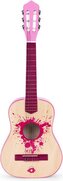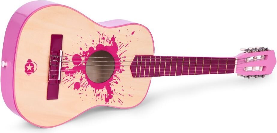 Nauč se hrát na kytaru! Dětská kytara pro děvčata byla navržena tak, aby měla všechny vlastnosti profesionálního nástroje. Má kobylku a hmatník se šesti strunami (3 kovové, 3 nylonové). Krk má 18 pražců a je zakončen hlavou s ladící mechanikou. Délka kytary: 76 cm Poznámka: Kytara je dodávána v nenaladěném stavu s povolenými strunami.