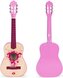 Nauč se hrát na kytaru! Dětská kytara pro děvčata byla navržena tak, aby měla všechny vlastnosti profesionálního nástroje. Má kobylku a hmatník se šesti strunami (3 kovové, 3 nylonové). Krk má 18 pražců a je zakončen hlavou s ladící mechanikou. Délka kytary: 86 cm Poznámka: Kytara je...