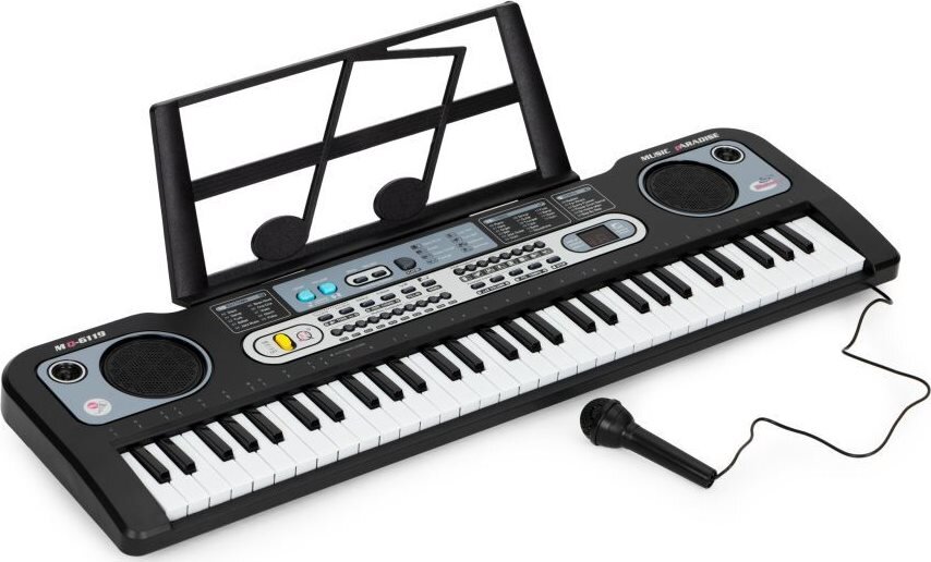 Nástroj rozvíjí kreativitu a vášeň pro hudbu. multifunkční a moderní design 61 kláves a 8 zvuků bicích nástrojů 2 výukové režimy, umožňuje nahrávat a přehrávat vlastní skladby 10 různých rytmů, například disco nebo funk 6 různých tónin a 6 předprogramovaných melodií přenosný a lehký,...